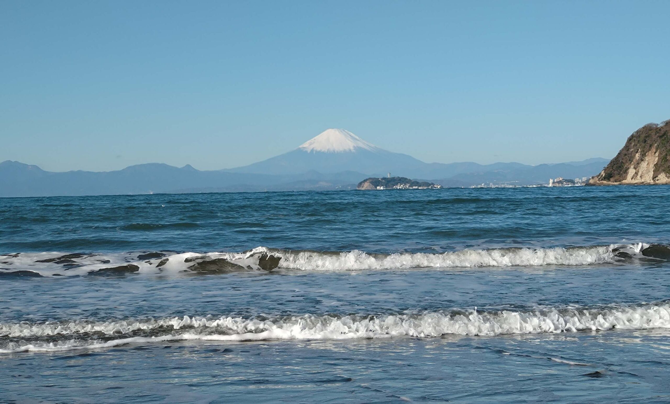 逗子海岸 東浜から富士山と江ノ島望む/ Enoshima and Mt.Fuji from Zushi beach (2026 Jan 12)