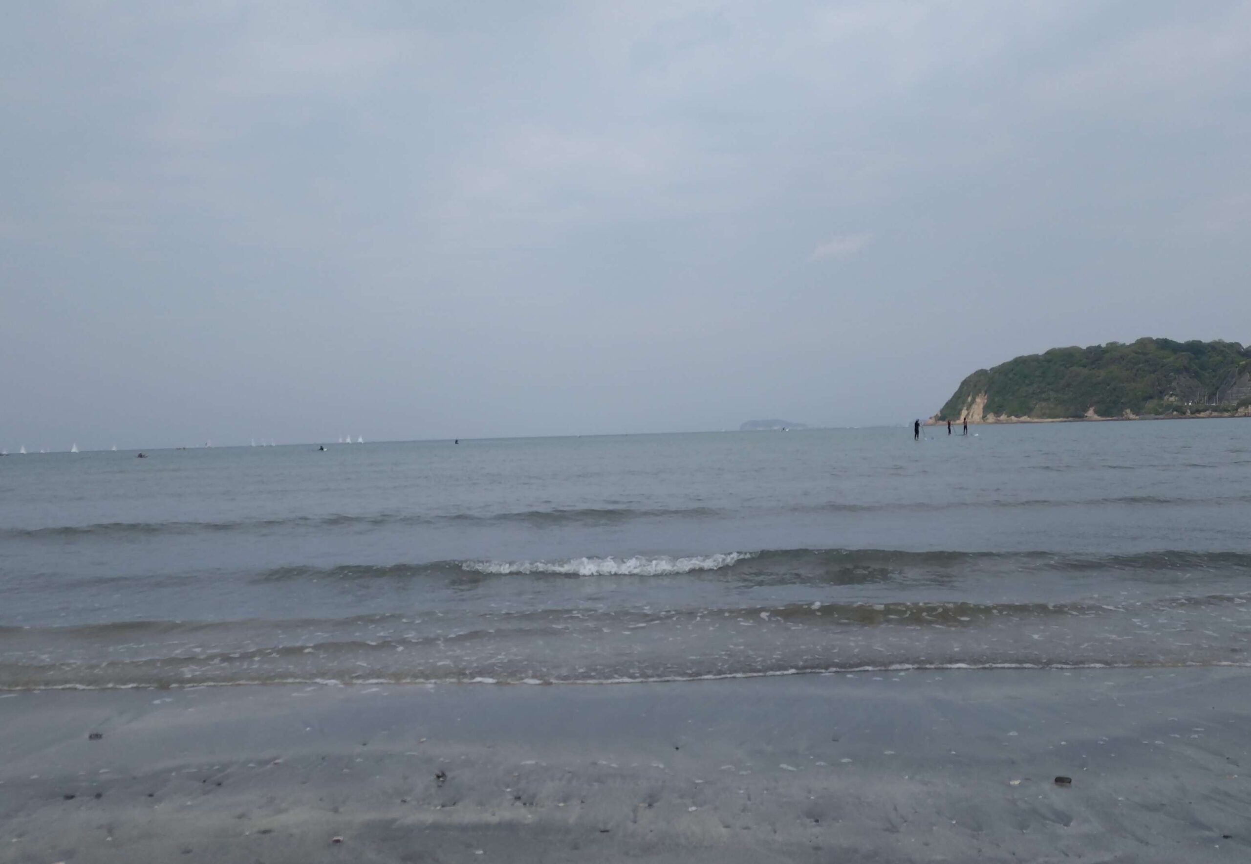 さて、SUPですが、薄ら曇りで、気温は19℃でちょっと暖かい。風は、北風3~6m/sでちょっとある感じです。うねりは、南0.6mで普段よりあります。太平洋上の低気圧の影響でうねりがあります。潮位は、9時40分に干潮で40㎝。スクール前のビーチでの写真撮影時には、西浜でサーファーがそれなりの人数いることは見えたが、中央や東浜は、ビーチへのうねりが弱い感じでした。でも、沖は(浅いかもしてないが)割れているので、どこかではできそうです。